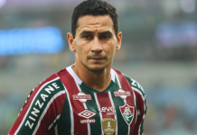 Com nove minutos do segundo tempo, Jean Lucas bateu forte da intermediária mas a bola acabou saindo a direita do gol.